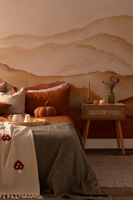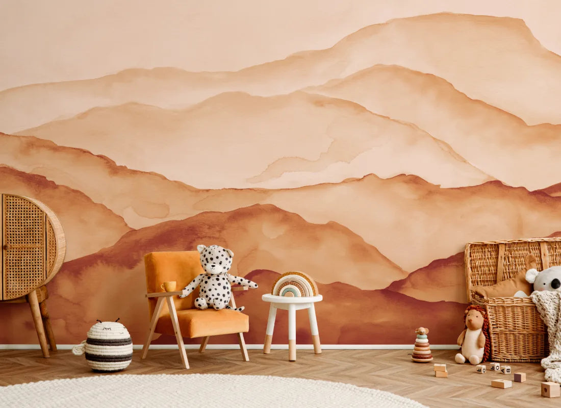 Create a soothing theme at home with this hand-painted orange watercolor peaceful mountain wallpaper mural, a versatile design that will work with a range of rooms and styles. With a subtle paper texture and watercolor techniques, this unique design will add depth to your walls that will intrigue anyone who sees it. Available in a collection of calming shades, this creative design is perfect for expressing your creative style while keeping the space minimal. Why not experiment with this landscape wallpaper in your bathroom, bedroom or even child’s nursery for a sophisticated style.