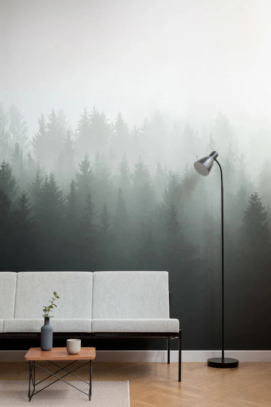 Our Deep Green Ombre Forest Wallpaper Mural features a lush landscape of trees that create a calm ombre effect in shades of light and dark green. Feel the presence of nature in your home with a serene woods wallpaper, with this atmospheric photography piece that looks as though it could have been painted on the wall with watercolors. This ombre mural makes a beautiful bedroom, dining room or living room piece, that will also make small spaces appear larger and full of life.