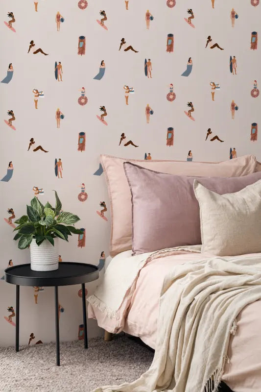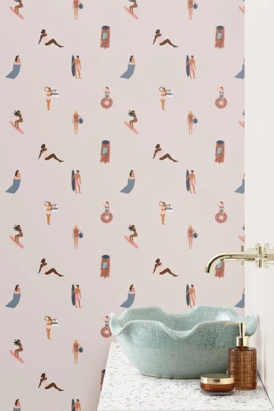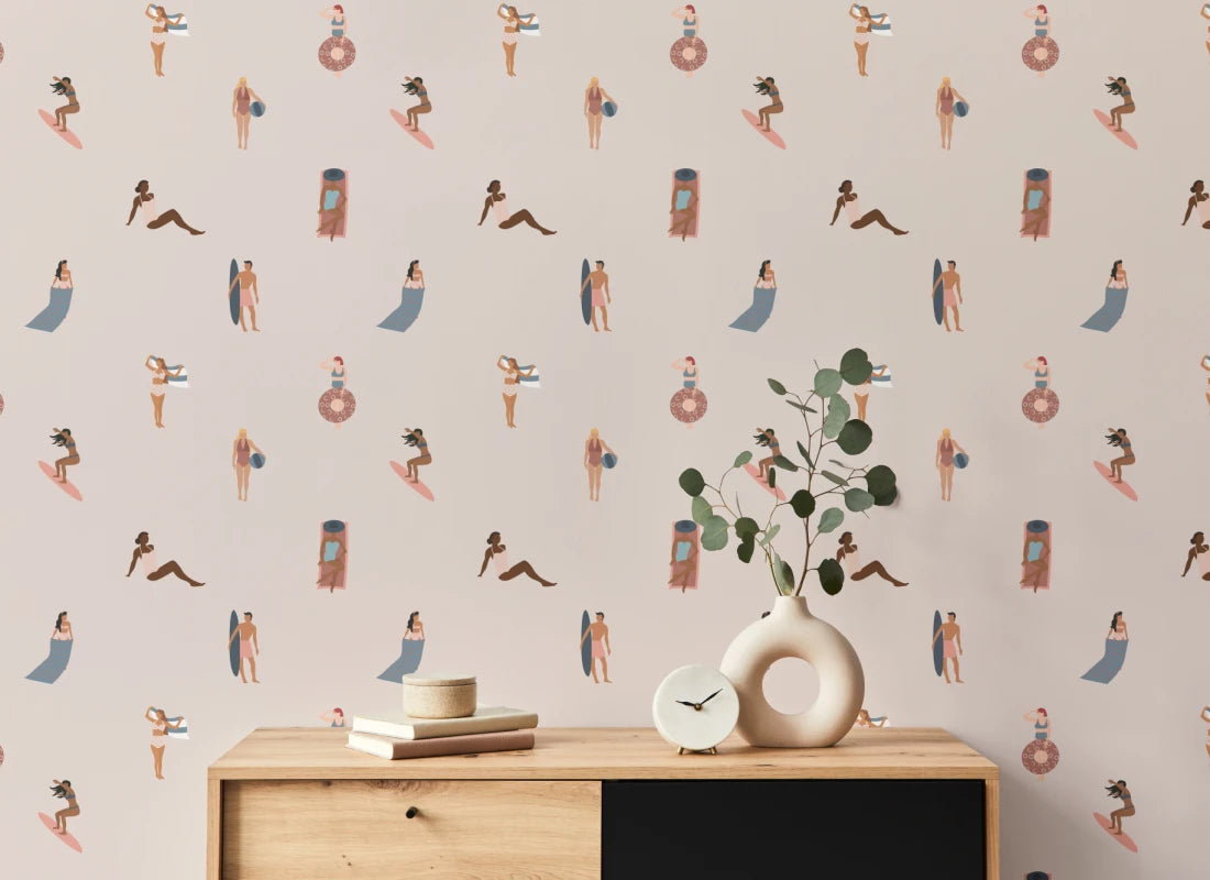If you are looking for a unique themed mural to add a quirky theme to your bedroom, bathroom or any other room of the house, check out the Cream Beach Life Seaside Repeat Pattern Wallpaper. This bespoke seaside themed mural features cool illustrations of people enjoying beach activities from sunbathing to surfing. This intricate design will create a contemporary feel in your space, subtly alluding to a nautical theme without being too overpowering. This design is available with a soft muted background in blue or cream meaning it will match many interior styles.