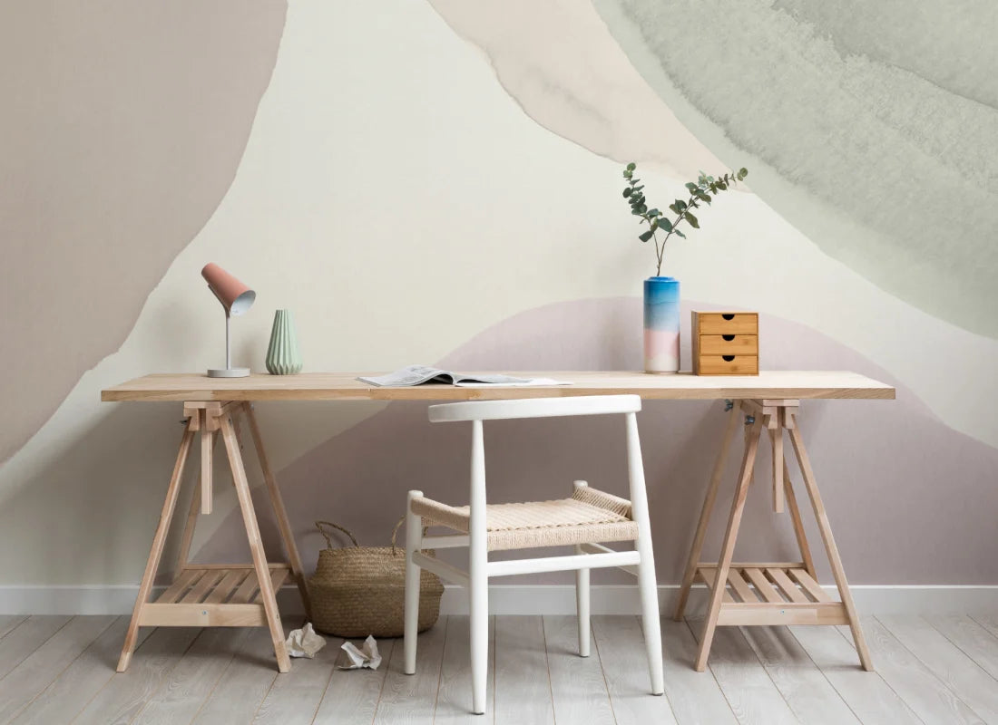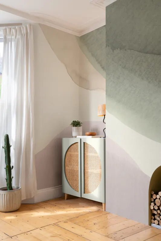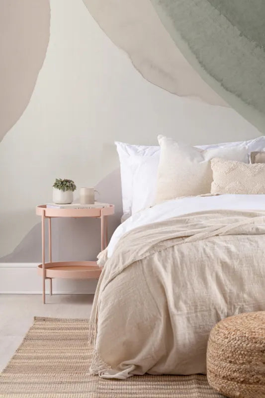 This calming watercolor design is called Mellow. It’s full of smooth, natural paint and paper textures and sweet, soft tones. We’ve hand-painted these huge rounded shapes to create a mural design with an abstract feel and a simple style. The color palette of sandy browns, beiges, warm green, and dusky lilac is a refreshing mix of modern pastels and neutrals. Mellow makes an ideal wall mural for a minimalist home or a calmly colorful space. Place it behind your creative desk corner, or the headboard of your cozy bed. Hang it in your hallway as a welcoming sight, or in the living room to set a more relaxed or lively mood.