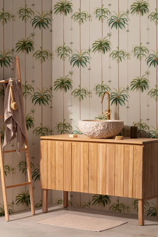 Queen Palm Classic captures the timeless beauty of vintage botanical illustrations, featuring palm trees in warm, tonal hues on a soft cream background. The delicate balance of tropical elegance and structured repetition makes this design a versatile choice for both traditional and contemporary interiors. Whether in a living room, hallway, or bedroom, it will create a serene and effortlessly stylish backdrop.