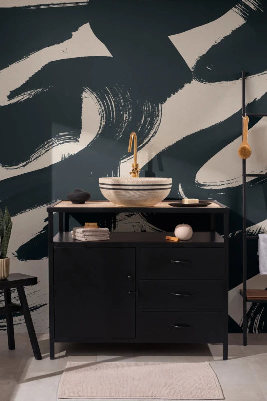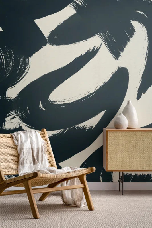 With a bold design inspired by traditional Japanese calligraphy, Tang is a mesmerizing midnight blue mural that has been painted by hand. The thick, deep navy brushstrokes of Indian ink painted across this beautiful wallpaper contrast harmoniously with the light beige background, which has a delicate paper texture. No matter which interior decor style you prefer in your home, this design will be a wow-worthy wall that's ready to complement any color palette. Take the Tang mural home to update your bedroom with an abstract aesthetic, bring some modern style to your bathroom, or add a soothing feature wall to your dining room as an interesting focal point.